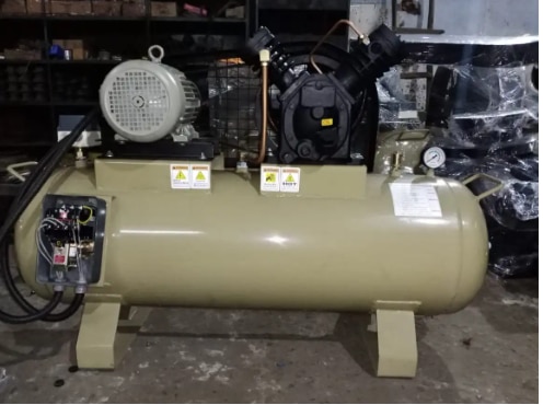 Reciprocating Compressor in Nagpur,Reciprocating 2 To 30 HP Two-Stage Medium Pressure WEE Two – stage air compressors are designed for medium pressure application and are made of heavy-duty components to give optimum performance. These compressors have two different sized cylinder bores. Robust overhung design crankshaft for reliability and easy maintenance, solid end connecting rods, high thermal efficiency, inter-cooling, totally reliable splash lubrication and balanced V-type construction for smooth, vibration-free operation. Bare compressor Air Suction Filter Air Receiver Receiver Fittings like: Safety Valve, Pressure Gauge, Service Valve, Drain Valve, Pressure Switch / Auxiliary Valve ASSC / CSC Regulation V-belts & Belt Guard Motor Pulley & Motor Slide Rail Motor & Starter